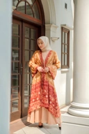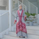 Gamis titiju dari bahan thailsilk, kain jumputan Palembang motif titik tuju dibuat dengan detail diikat satu per satu sehingga menghasilkan motif titik yang detail dan rapat seperti ini. Pengerjaannya 100% handmade bukan printing, pengerjaannya lebih sulit dan menghabiskan waktu yang lebih lama, elegan dan keren banget.