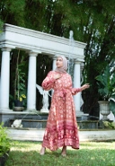 Gamis titiju dari bahan thailsilk, kain jumputan Palembang motif titik tuju dibuat dengan detail diikat satu per satu sehingga menghasilkan motif titik yang detail dan rapat seperti ini. Pengerjaannya 100% handmade bukan printing, pengerjaannya lebih sulit dan menghabiskan waktu yang lebih lama, elegan dan keren banget.