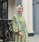 Untuk gamisnya kombinasi bahan maxmara dan viscos kain jumputan. Resliting depan, tangan karet dan pakai furing. Detail size gamis :