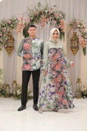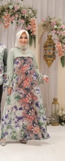 Untuk gamisnya full kain jumputan Palembang. Detail dada kombinasi lace vintage yang cantik, tangan tali variasi. Lingkar dada 108 cm dan panjang baju 140 cm.